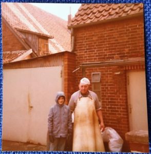 Schlachtetag – mein Onkel vor dem Haus